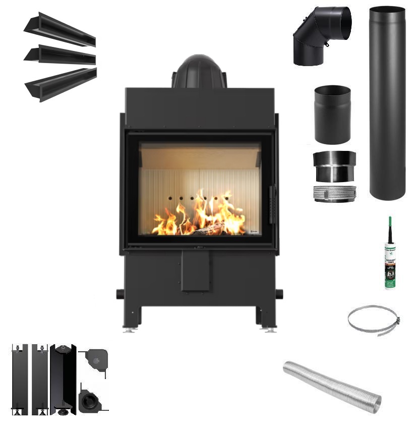 Zestaw kominek powietrzny stalowy KRATKI LUCY 12 kW Ø 200 z akcesoriami